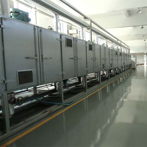 將所要處理的物料通過適當?shù)募恿蠙C構(gòu)(如星型布料器、擺動帶、粉碎機或造粒機),分布在輸送帶上,輸送帶通過一個或幾個加熱單元組成的通道,每個加熱單元均配有空氣加熱和循環(huán)系統(tǒng),每一個通道有一個或幾個排濕系統(tǒng),在輸送帶通過時,熱空氣從上往下或從下往上通過輸送帶上的物料,從而使物料能均勻干燥。