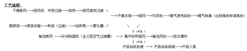 該機(jī)組由廢液濃縮、噴霧干燥、產(chǎn)品收集及包裝、尾氣廢熱回收和尾氣除臭等部分組成。