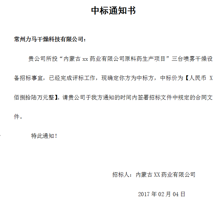 經(jīng)過廣泛的調(diào)研和嚴(yán)格的測(cè)驗(yàn),內(nèi)蒙古xx藥業(yè)有限公司,最終決定向常州力馬科技有限公司定購(gòu)三臺(tái)原料藥噴霧干燥機(jī),單筆金額高達(dá)百萬余元,貢獻(xiàn)力馬新春第一單,為力馬贏得了農(nóng)歷雞年的頭彩。同時(shí)也展示了內(nèi)蒙古xx藥業(yè)有限公司蓬勃的生機(jī)和迅猛的發(fā)展勢(shì)頭,真誠(chéng)祝愿兩家公司合作愉快、雞年大吉。